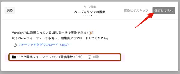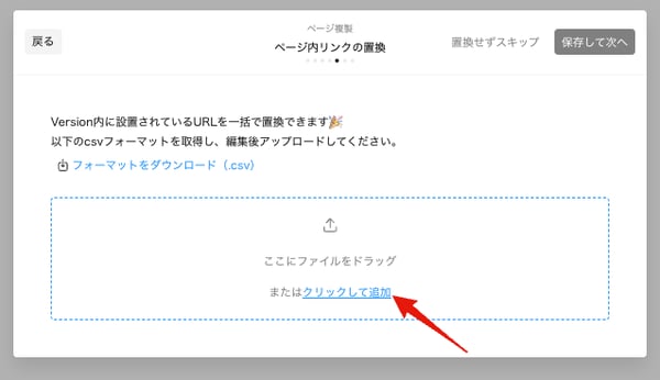 - 「ページ内リンクの置換」セクションまで進み、「フォーマットをダウンロード(.csv)」をクリック