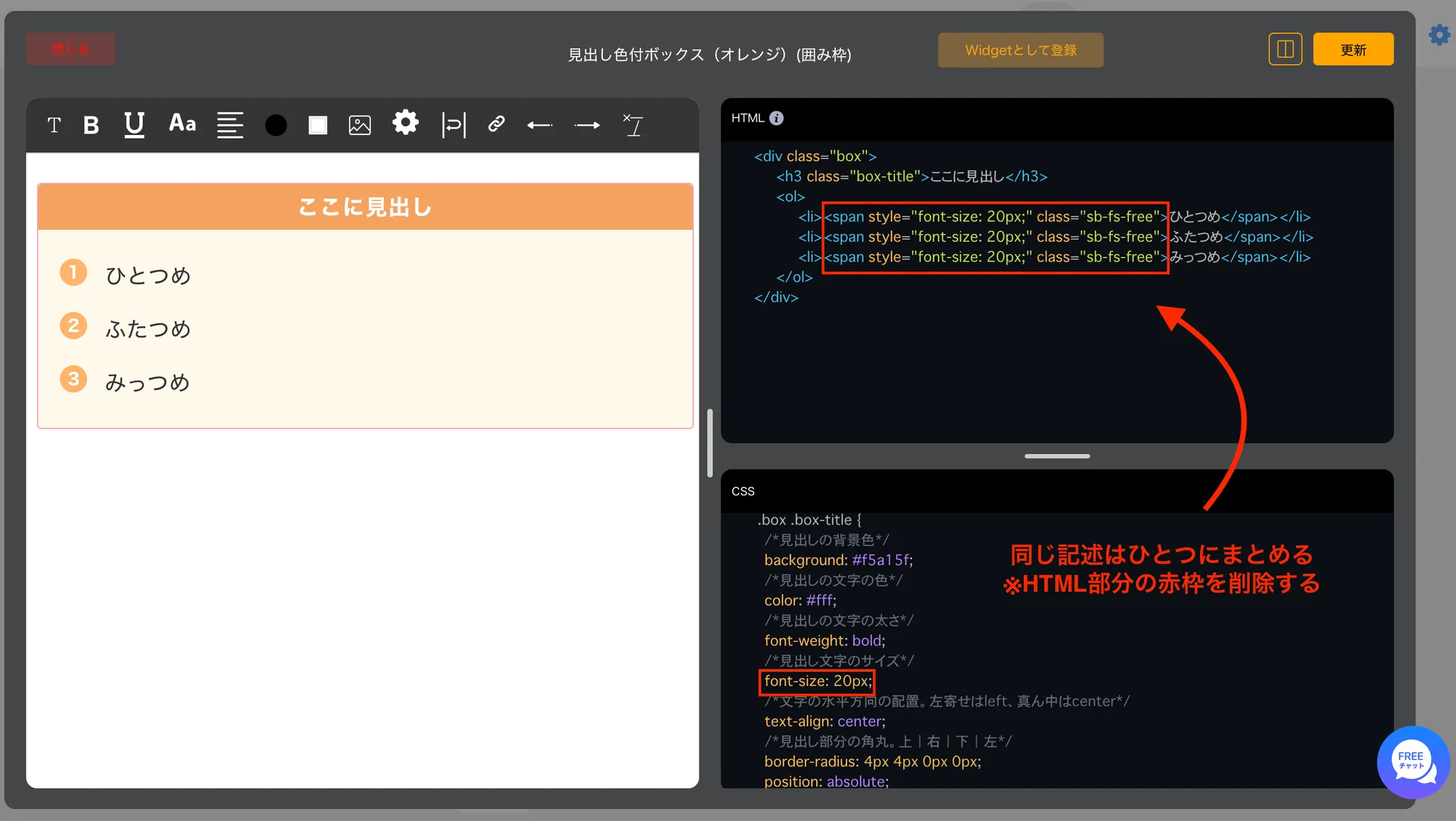 ※上記方法を実施後、文字数が軽減されない場合は管理画面右下のFREEチャットよりご質問ください。