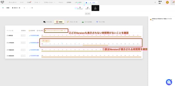 - 配信割合が 0のVersion は、時間帯設定をしても表示されません