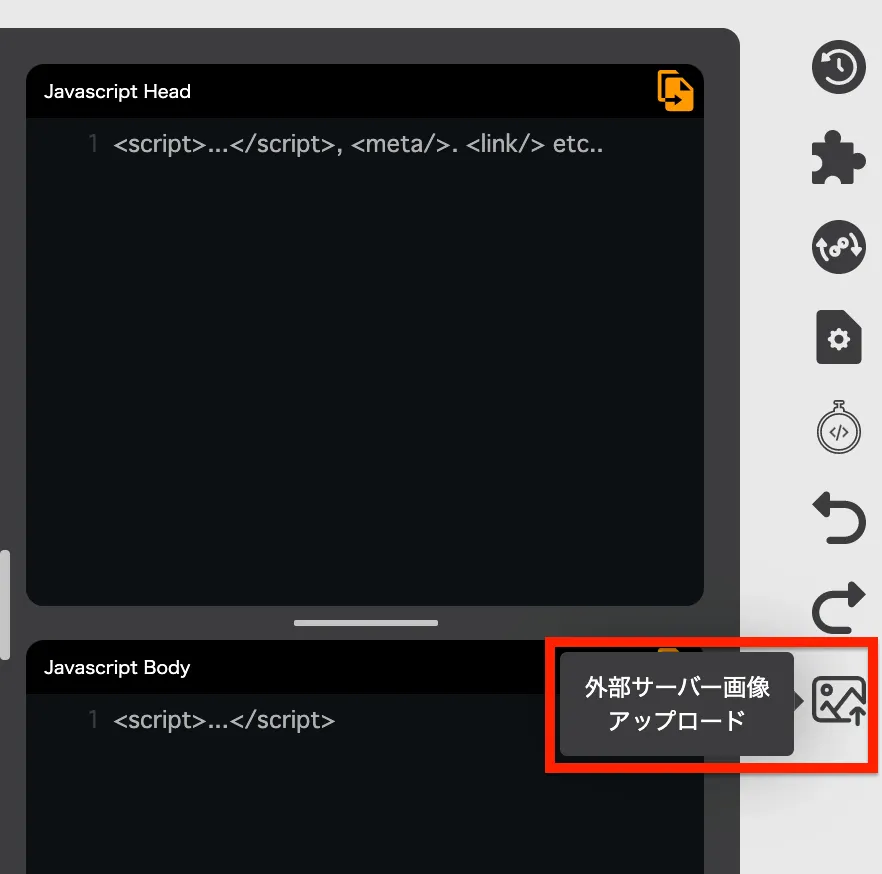 - 画面右端にある「外部サーバー画像アップロード」をクリック