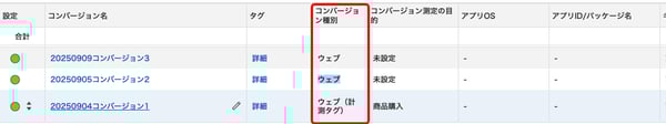 - コンバージョン測定タグ(コンバージョン種別:『ウェブ』)