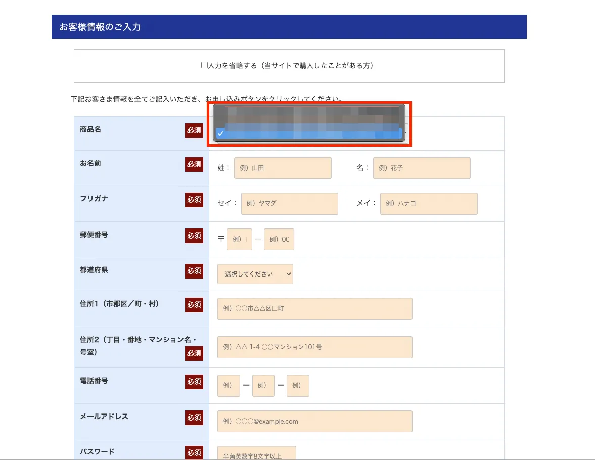記事LP(LP)から商品を選択した状態でカート一体型LPに遷移させたい場合